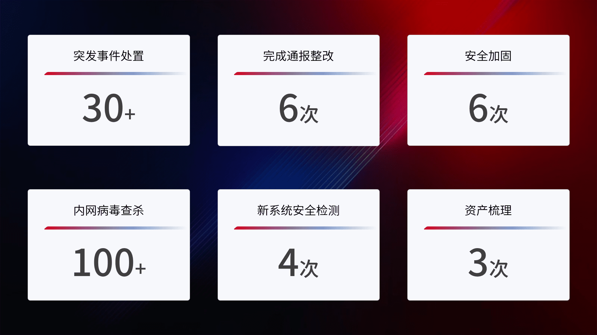 根据客户需求定制整改方案,,,强化应急演练,,,提升网络安全事件应对能力。。